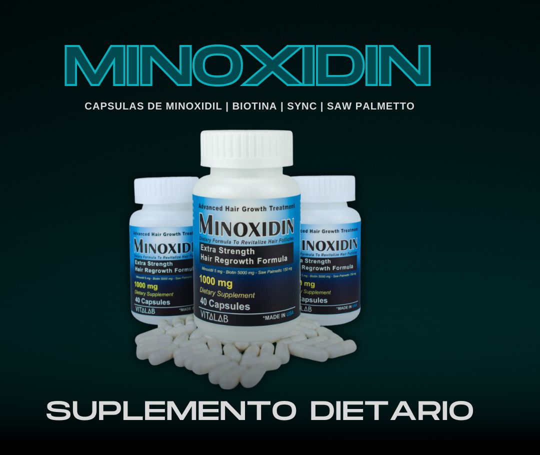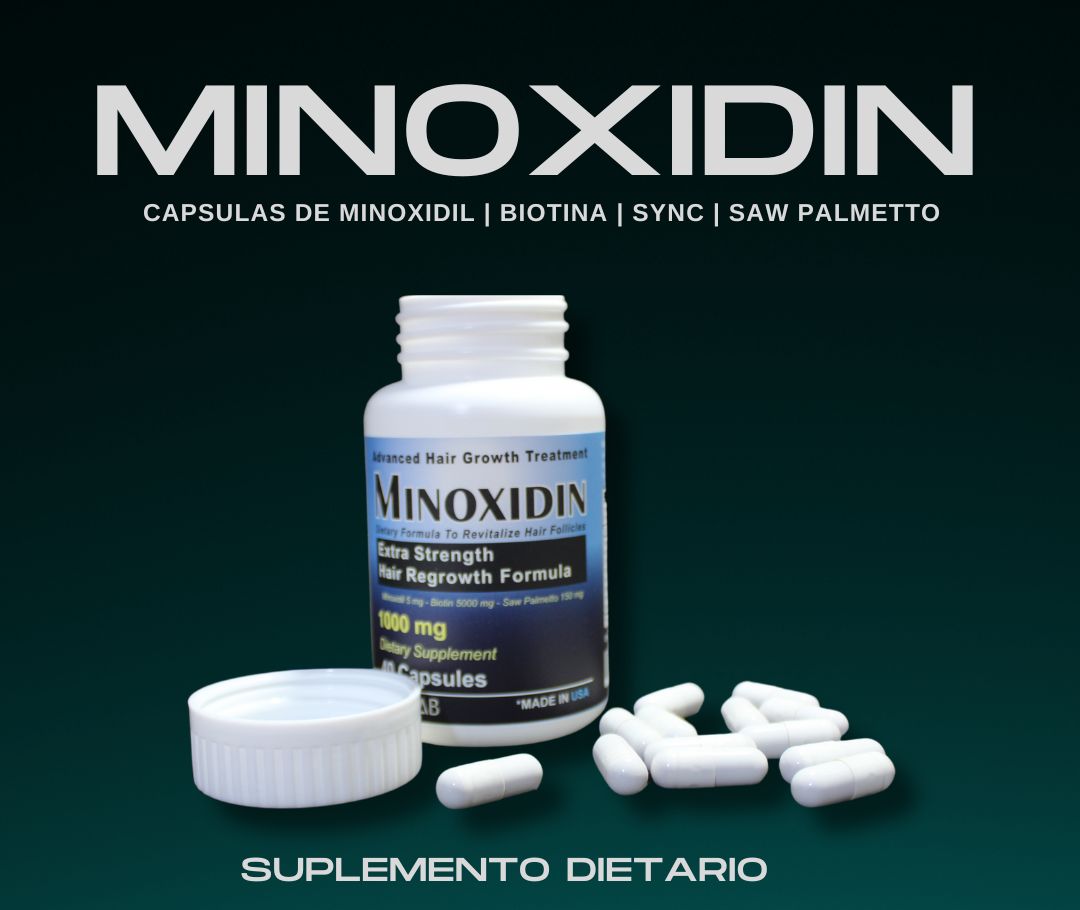 Minoxidin Oral Capsules Es un suplemento dietario que ayuda a estimular el crecimiento, controlando la caída de cabello al mejorar la circulación sanguínea en los folículos capilares y prolongar la fase de crecimiento del cabello (Fase anágena). Está científicamente comprobado que el Minoxidil Oral es mas efectivo que en versión Tópica (líquida).
